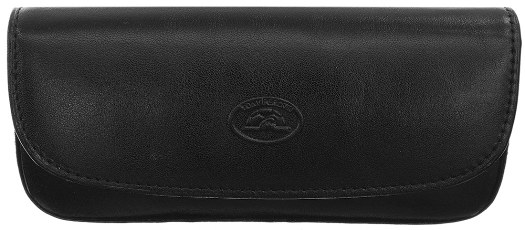 Выполнен из натуральной кожи высокого качества. Модель имеет горизонтальную форму. Общее закрытие на кнопку. Внутри отделение для очков с перегородкой по центру. С тыльной стороны шлевка для ношения на ремне. На лицевой стороне логотип бренда - Tony Perotti.