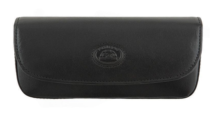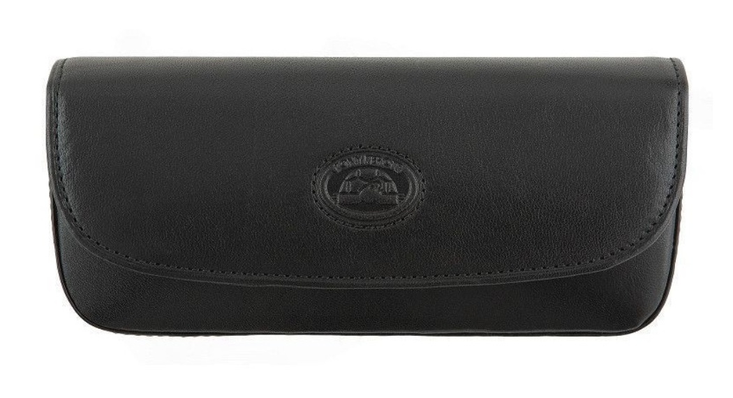 Выполнен из натуральной кожи высокого качества. Закрытие на кнопку. Внутри одно отделение для очков.С тыльной стороны шлевка для ношения на ремне. На лицевой стороне логотип бренда – «черепашка».