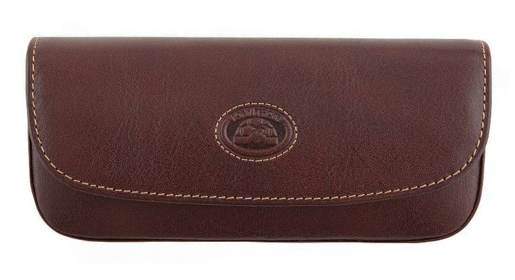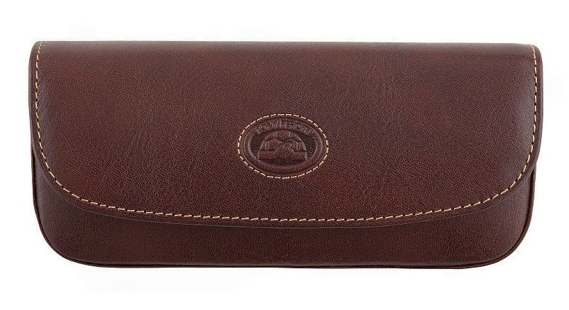 Выполнен из натуральной кожи высокого качества. Закрытие на кнопку. Внутри одно отделение для очков. С тыльной стороны имеется шлевка для ношения на ремне. На лицевой стороне логотип бренда – «черепашка».