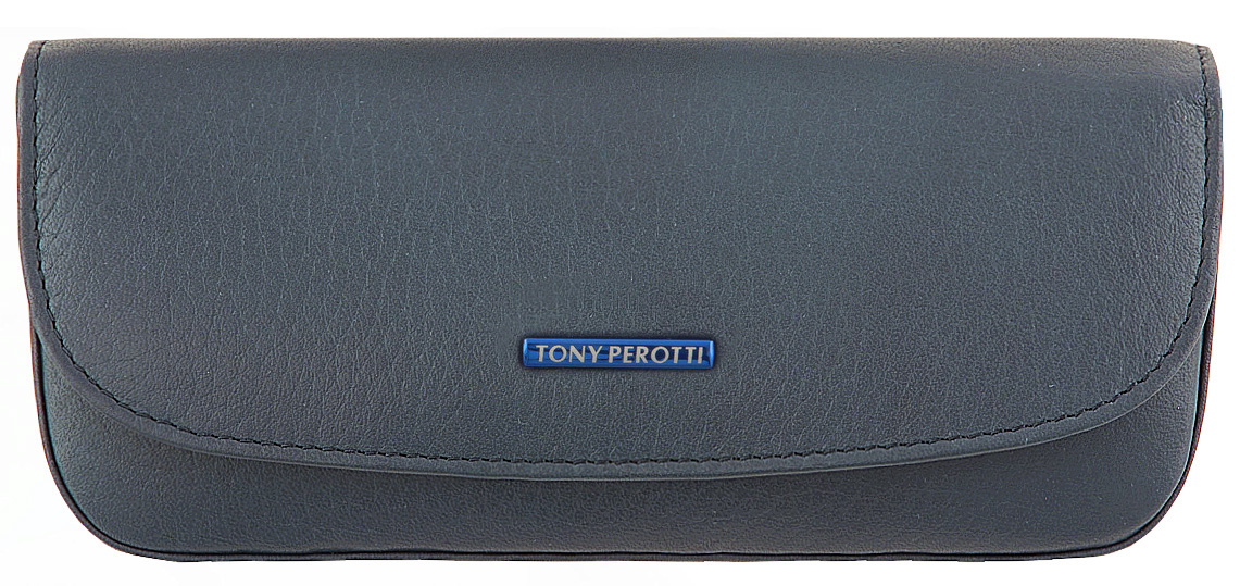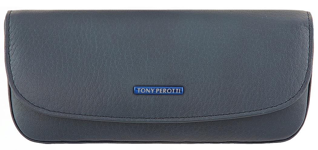 Выполнен из натуральной кожи высокого качества. Общее закрытие на кнопку. Внутри отделение для хранение очков с перегородкой посередине. На лицевой стороне фирменная надпись бренда - Tony Perotti.
