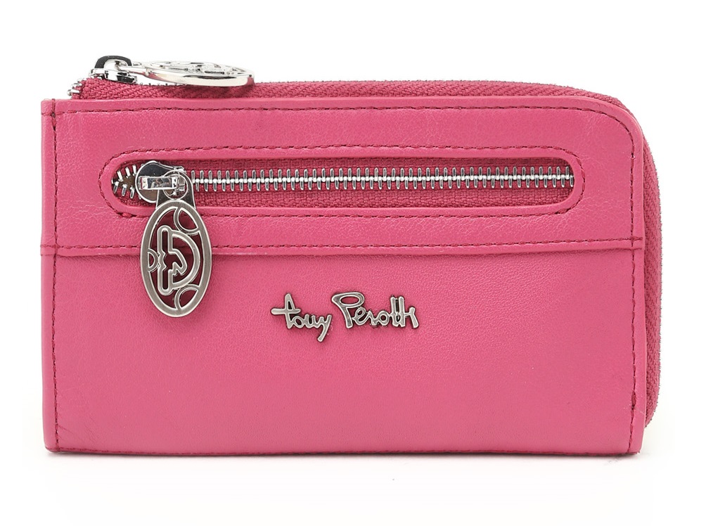 Выполнен из натуральной кожи высокого качества. Автономная секция для ключей средней величины с кольцами на цепочках, общая молния на закрытие, внешнее отделение на молнии. На лицевой стороне фирменная надпись бренда- TONY PEROTTI.Фурнитура-серебро.
