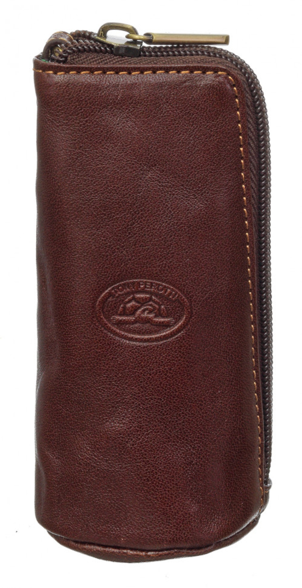 Выполнена из натуральной кожи высокого качества. Модель имеет вертикальную форму. Общее закрытие на молнию. Внутри одно отделение для хранения ключей - одно кольцо и один карабин. Удобно держать в руке На лицевой стороне логотип бренда - Tony Perotti.