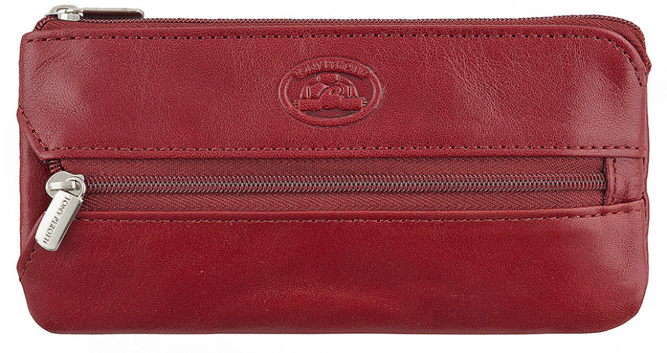 Выполнена из натуральной кожи высокого качества. Модель имеет горизонтальную форму. Общее закрытие на молнию. Внутри одно отделение для хранения ключей - два кольца. Удобно держать в руке На лицевой стороне карман на молнии с 4-мя кольцами для ключей. Фирменный логотип бренда Tony Perotti - "черепашка".