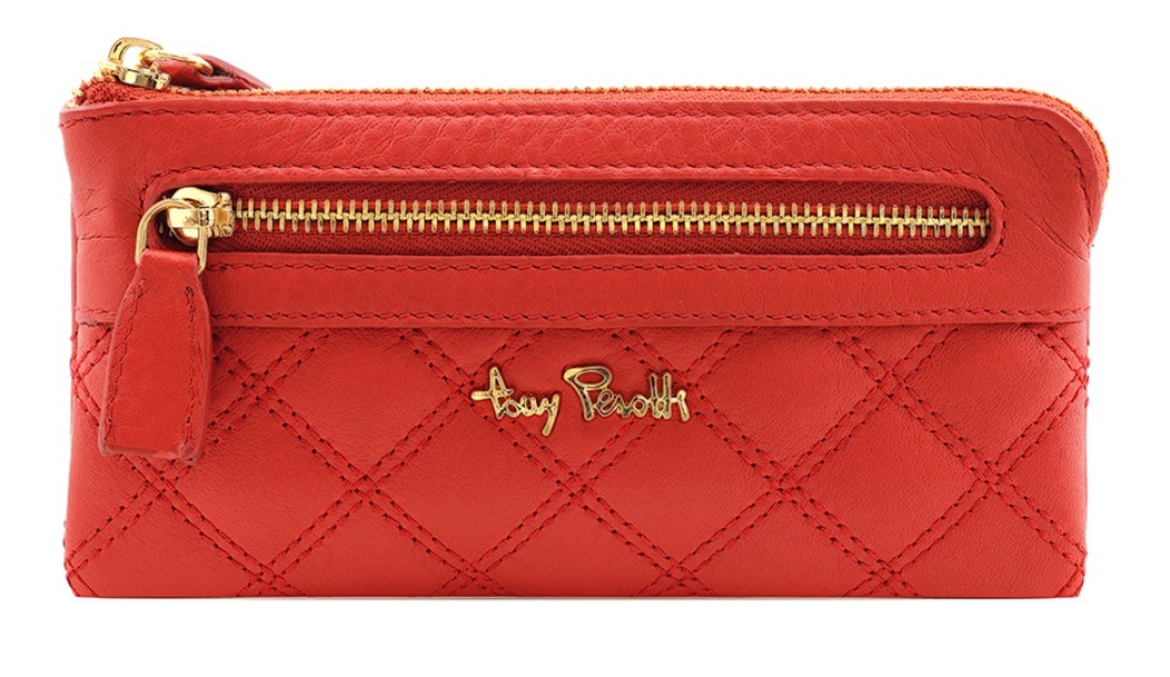 Выполнен из натуральной кожи высокого качества. Общее закрытие на молнию. Внутри одно отделение для хранения ключей с двумя кольцами на цепочках. Имеет дополнительный отсек на молнии снаружи. На лицевой стороне-фирменная надпись бренда TONY PEROTTI.