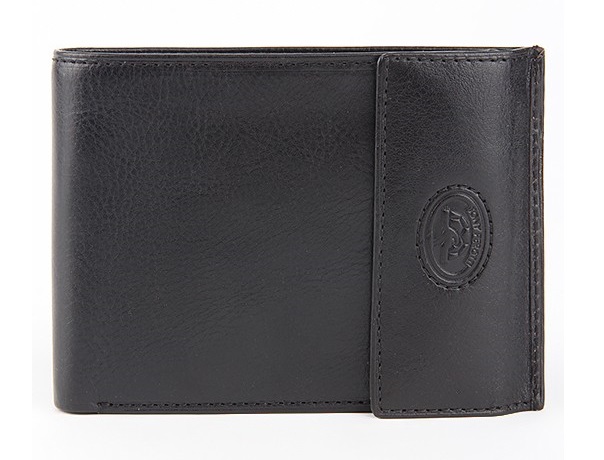Выполнен из натуральной кожи высочайшего качества. Общее закрытие на оригинальную шлевку с кнопкой. Две автономные секции для банкнот, дополнительные отделения для визиток, кредиток, монетница на кнопке, потайные боковые карманы.