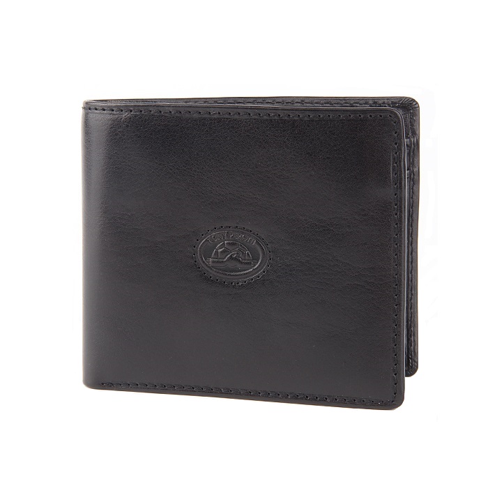 Две автономные секции для банкнот, дополнительные отделения для визиток, кредиток, проездных документов, потайное отделение на молнии, монетница на кнопке.