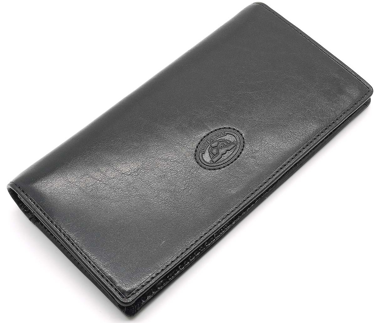 Выполнен из натуральной кожи высокого качества. Общее закрытие на кнопку. Автономная секция для банкнот, дополнительные внутренние отделения, отделение на молнии для мелочи. На лицевой стороне-фирменный логотип бренда «черепашка».