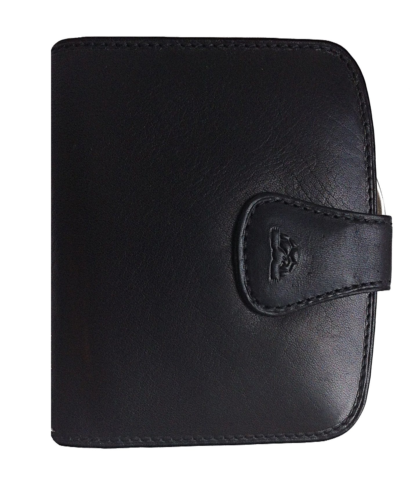 Две автономные секции для банкнот, отделения для визиток, кредиток, фото, проездных документов, монетница на два отделения, общая шлевка застежка.
