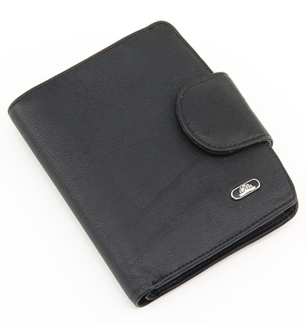 Две автономные секции для банкнот, дополнительные внутренние отделения для визиток, кредиток, монетница на кнопке, общая шлевка-застежка на кнопке.