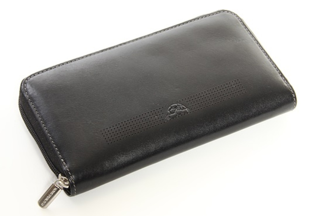Две автономные секции для банкнот, потайное отделение на молнии, дополнительные внутренние отделения для принадлежностей, общая молния на закрытие.