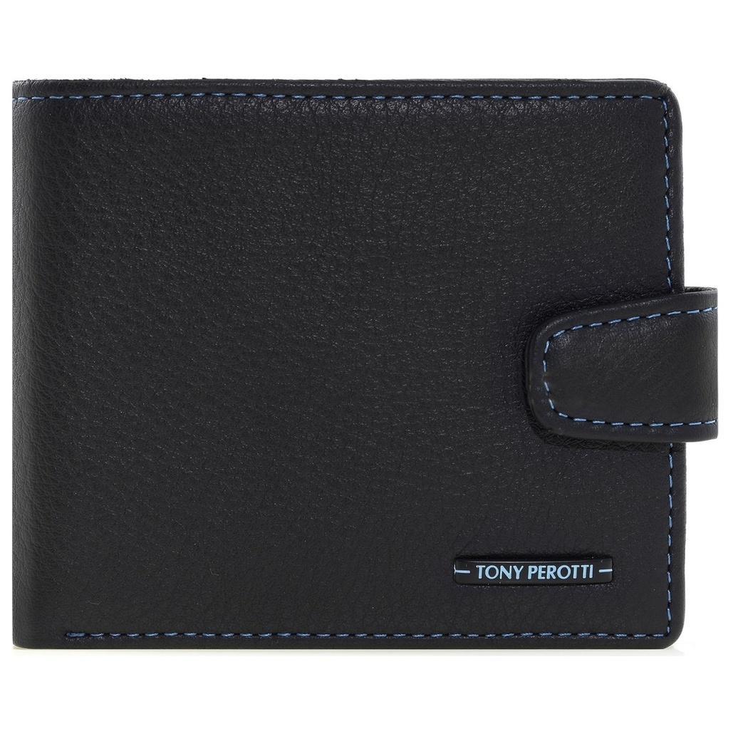 Выполнен из натуральной кожи. Общее закрытие на шлевку с кнопкой. Внутри два отделения для банкнот, отделение для мелочи на кнопке, 3 отсека для визиток/кредиток. Контрастная синяя отстрочка придает модели неповторимый стиль.