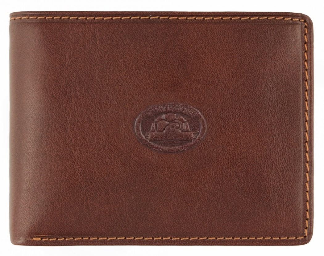Выполнен из натуральной кожи высокого качества. Закрытие по типу «книжка». Внутри два отделения для банкнот, монетница на кнопке, дополнительные отделения для визиток/кредиток, откидной отсек с двумя сетчатыми кармашками. На лицевой стороне фирменный логотип бренда - «черепашка».