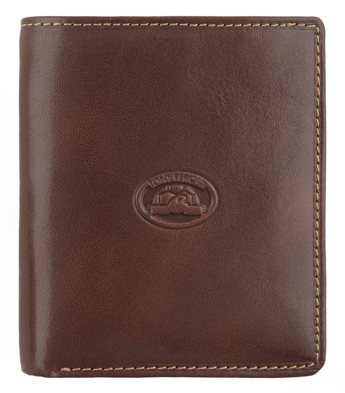 Выполнен из натуральной кожи высокого качества. Общее закрытие на кнопку. Внутри два отделения для банкнот, дополнительные отсеки для визиток/кредиток, монетница . На лицевой стороне фирменный логотип бренда – «черепашка».