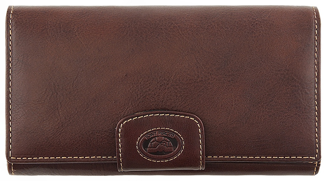 Выполнен из натуральной кожи высочайшего качества. Общее закрытие на оригинальную шлевку с кнопкой. Три автономные секции для банкнот, дополнительные отделения для визиток, кредиток, монетница с одним отделением на защелке, потайной карман на молнии. С тыльной стороны открытое отделение.