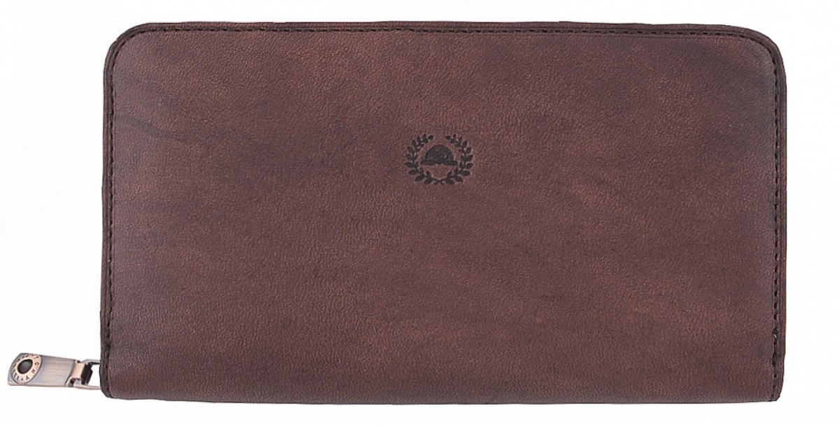 Одна автономная секция на молнии. Внутри два кармана на молнии для монет и других мелочей, несколько отделений для купюр, множество карманов и отделений для карт, удобное отделение на молнии с тыльной стороны. Вместителен и функционален.