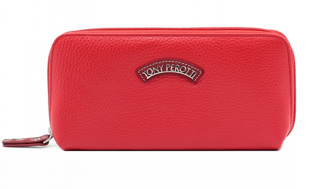 Выполнен из натуральной кожи высокого качества. Общее закрытие на молнию. Внутри два отделения для банкнот, разделенные перегородкой на молнии. Дополнительные отсеки для визиток/кредиток. На лицевой стороне фирменная надпись бренда-Tony Perotti.