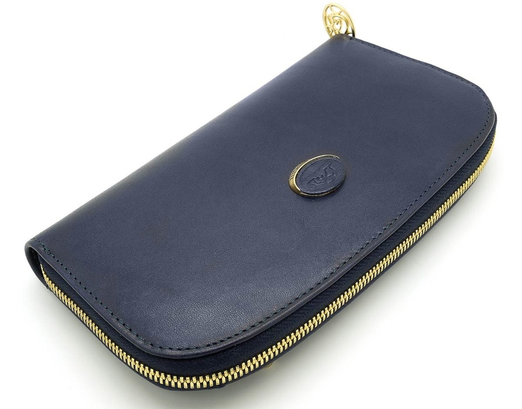 Две автономные секции для банкнот, отделение-монетница на молнии для монет, дополнительные внутренние отделения для визиток/кредиток, отделение на молнии с внешней тыльной стороны, общая молния на открытие/закрытие.