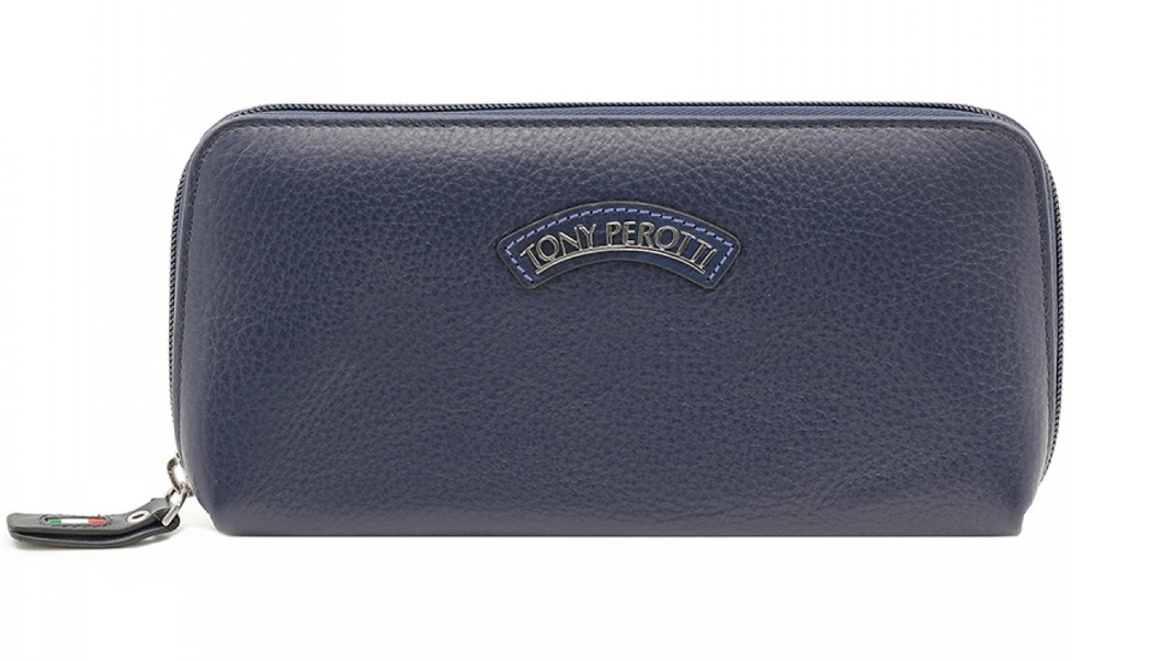 Выполнен из натуральной кожи высокого качества. Общее закрытие на молнию. Внутри два отделения для банкнот, разделенные перегородкой на молнии. Дополнительные отсеки для визиток/кредиток. На лицевой стороне фирменная надпись бренда-Tony Perotti.