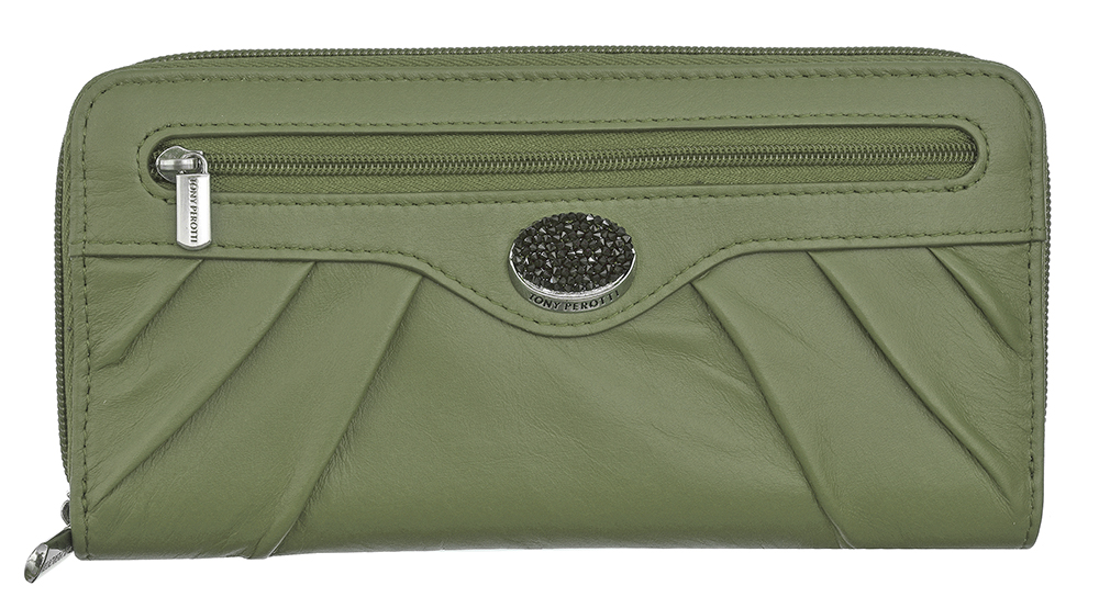 Новая коллекция Swarovski с переливающимися кристаллами не оставит равнодушной обладательницу. Выполнен из натуральной кожи высокого качества. Закрывается на молнию. Модель имеет удобную горизонтальную форму. В кошельке имеется отделение для монет на молнии. Имеет три отделения для купюр. Также имеет 8 отсеков под визитки / кредитки. Дополнительные карманы для принадлежностей. На лицевой стороне карман на молнии и логотип бренда- Tony Perotti , украшенный россыпью кристаллов Swarovski.