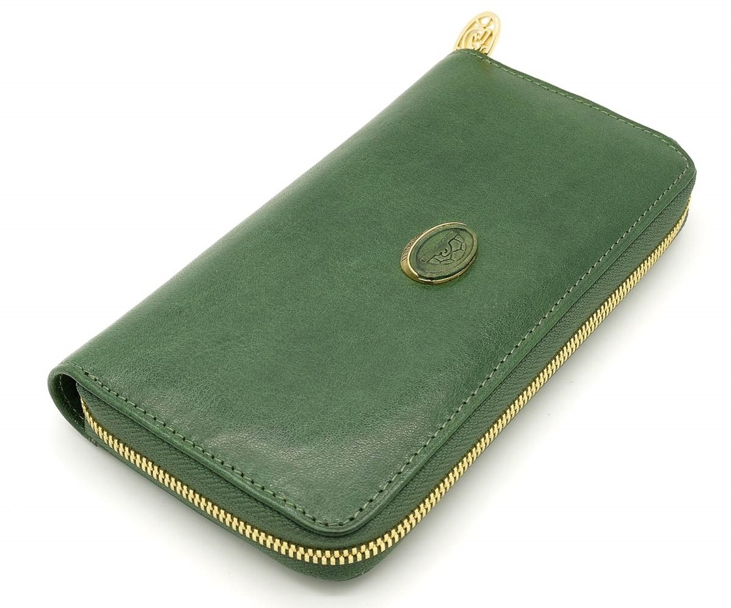 Две автономные секции для банкнот, отделение на молнии для монет, дополнительные внутренние отделения для визиток/кредиток, общая молния на открытие/закрытие.