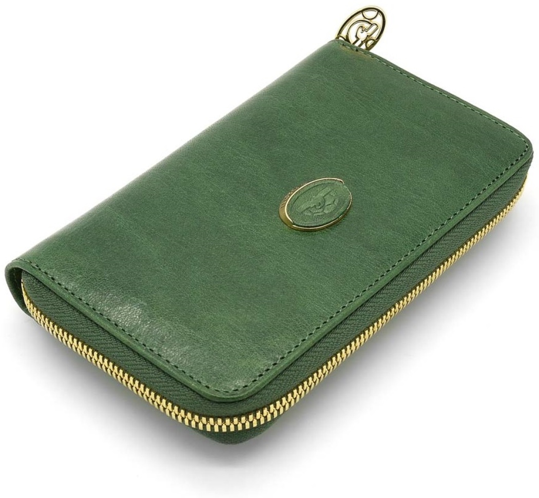 Одно автономное отделения для банкнот, дополнительные внутренние отделения для визиток/кредиток, два потайных отделения, общая молния на открытие/закрытие, монетница с внешней тыльной стороны на клапане с кнопкой.