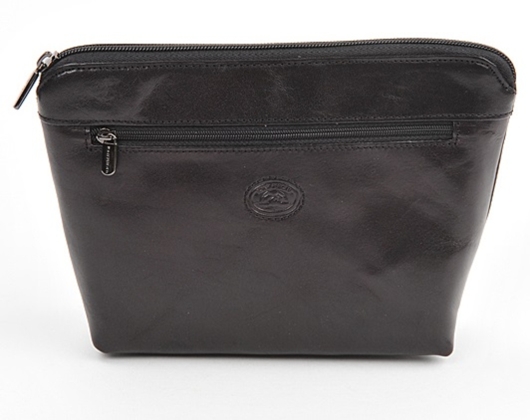 Выполнена из натуральной кожи высокого качества. Косметичка трапециевидной формы, закрытие на молнию. Внутри одно автономное отделение для принадлежностей. Имеется карман на молнии. С тыльной стороны карман на молнии. На лицевой стороне фирменный логотип бренда – «черепашка».