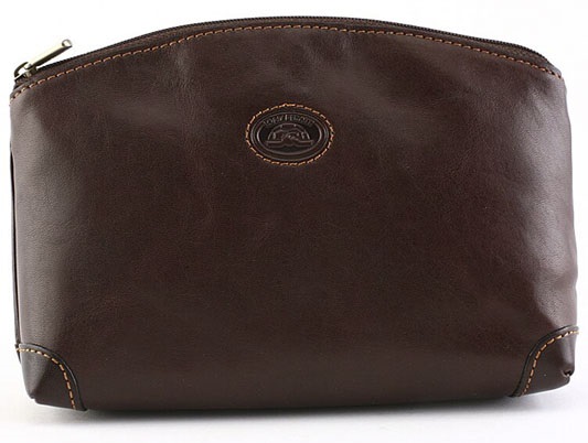 Выполнена из натуральной кожи высокого качества.Общее закрытие на молнию. Внутри одно отделение для принадлежностей. На лицевой стороне-логотип бренда- "черепашка".