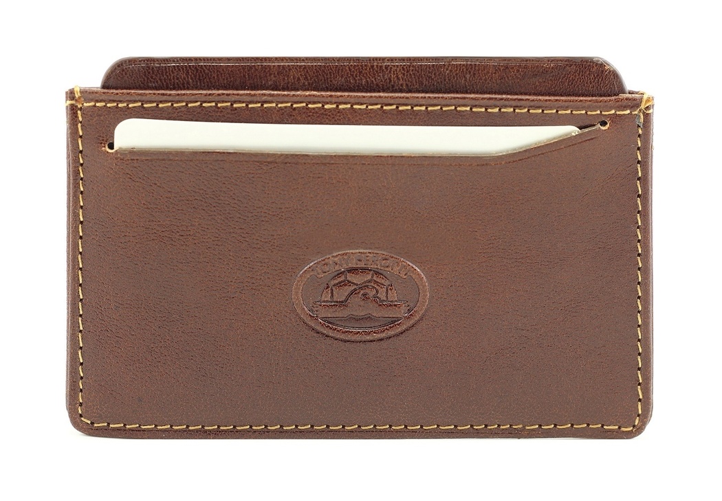 Выполнена из натуральной кожи высокого качества. Пять отделений для кредитных карт. На лицевой стороне фирменный логотип бренда- «черепашка».