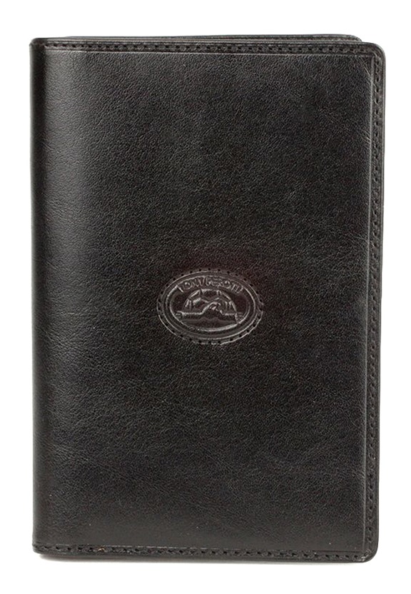 Выполнена из натуральной кожи высокого качества.Закрытие по типу "книжка". Внутри прозрачные вкладыши для документов.На лицевой стороне-фирменный логотип бренда Tony Perotti-"черепашка".