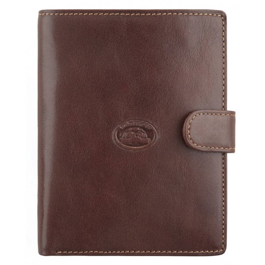Выполнена из натуральной кожи высокого качества. Общее закрытие шлевку с кнопкой. Внутри отделение для паспорта, отделение для хранения автодокументов, отсек для банкнот, дополнительные отделения для визиток/кредиток.На лицевой стороне логотип бренда Tony Perotti- "черепашка".