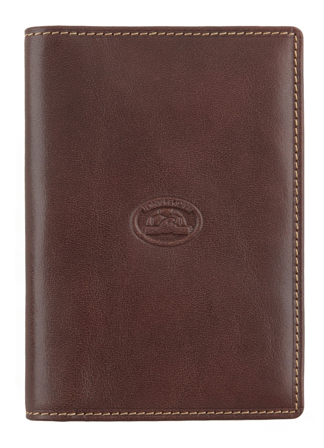Выполнена из натуральной кожи. Закрытие по типу «книжка». Внутри основное отделение для паспорта и шесть отсеков под визитки/ кредитки. На лицевой стороне фирменный логотип бренда Tony Perotti – «черепашка».