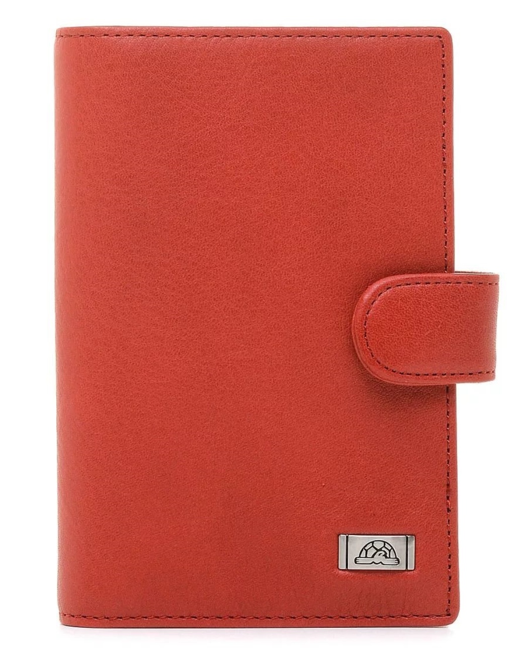 Обложка выполнена из натуральной кожи высокого качества, очень мягкой на ощупь. Закрывается на шлевку с кнопкой. Внутри 3 отделения для визиток/кредиток. На лицевой стороне логотип бренда-черепашка.
