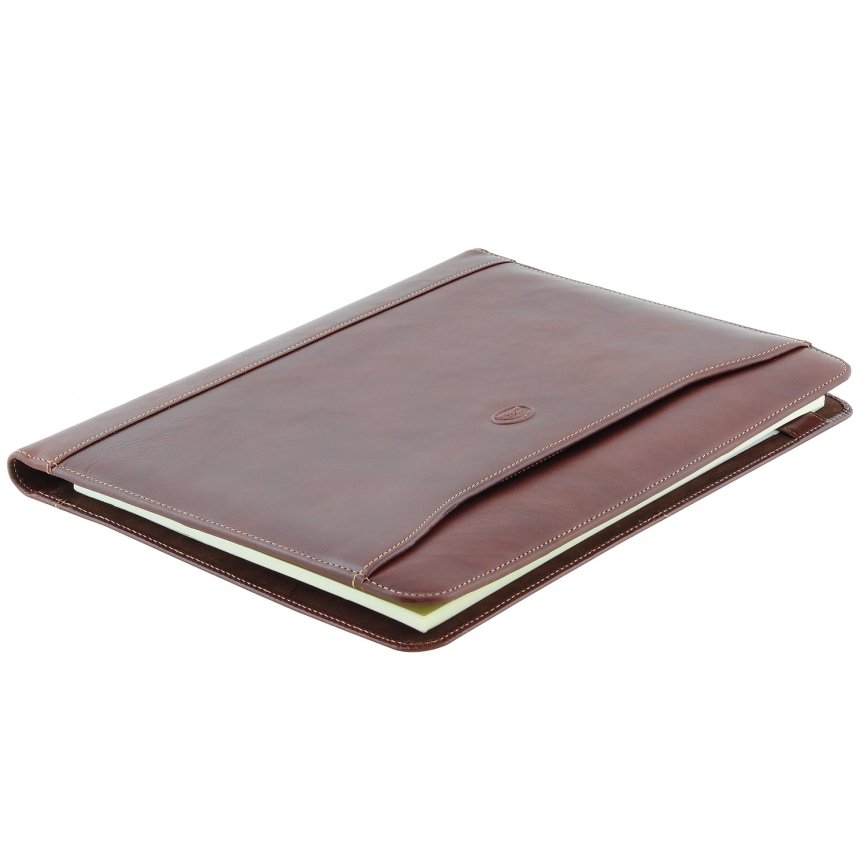 Выполнена из натуральной кожи высокого качества. Общее закрытие по типу "книжка". Внутри два отсека для документов, кармашки для визиток,съемный блокнот, петелька для ручки, боковой потайной карман. На лицевой стороне открытый карман для принадлежностей, логотип бренда-"черепашка".