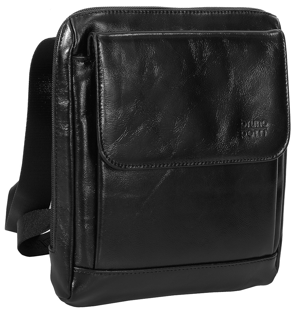 Выполнена из натуральной кожи высокого качества. Общее закрытие на молнию. Внутри два отделения, разделенные перегородкой на молнии, два отсека на молниях, карман для телефона, петельки для ручек. На лицевой стороне под клапаном на магнитной кнопке отделение. С тыльной стороны есть отделение на молнии. На лицевой стороне фирменная надпись бренда-Bruno Perri.Регулируемая ручка для ношения сумки на плече.