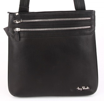 Три автономные секции, на молниях, дополнительные внутренние отделения, ремень для ношения на плече.