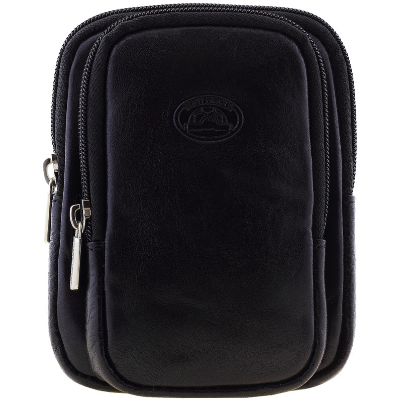 Выполнена из натуральной кожи высокого качества. Модель имеет два отделения на молнии для принадлежностей. С тыльной стороны есть крепление на ремень. На лицевой стороне логотип бренда Tony Perotti - «черепашка».