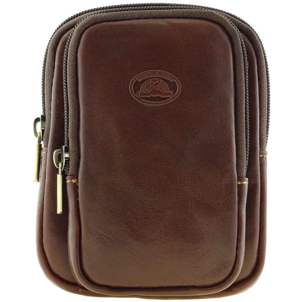 Выполнена из натуральной кожи высокого качества. Модель имеет два отделения на молнии для принадлежностей. С тыльной стороны есть крепление на ремень. На лицевой стороне логотип бренда Tony Perotti - «черепашка».