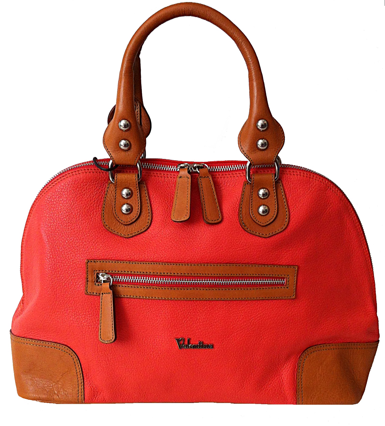 Большая, яркая и вместительная сумка. Выполнена из плотной кожи и отлично держит форму. Сумка закрывается на общую застежку-молния. С лицевой стороны - вместительный карман на молнии. Внутри-одно большое отделение, карман на молнии, 2 кармана открытыx для телефона и прочиx мелочей. Длинная ручка на карабинаx в комплекте.