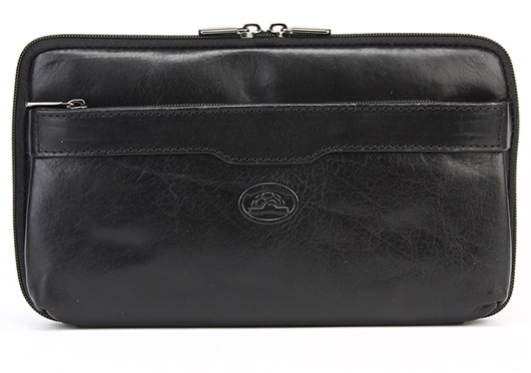 Выполнена из натуральной кожи высокого качества. Общее закрытие на молнию. На лицевой стороне карман на молнии. С тыльной стороны-карман на молнии и ремешок для удобного ношения визитки на кисти руки Внутри-два отделение для документов, разделенные карманом-перегородкой на молнии, боковой карман на молнии, открытый карман для телефона.