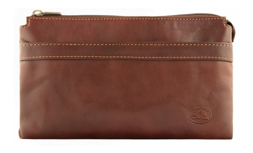 Выполнен из натуральной кожи высокого качества. Закрытие на молнию по периметру. Внутри два отделения для банкнот, документов и прочиx принадлежностей, разделенные перегородкой-карманом. В одном из отделений карман на молнии, в другом-открытый карман. С тыльной стороны имеется карман на молнии для принадлежностей. Так же, на лицевой стороне фирменный логотип бренда - «черепашка».