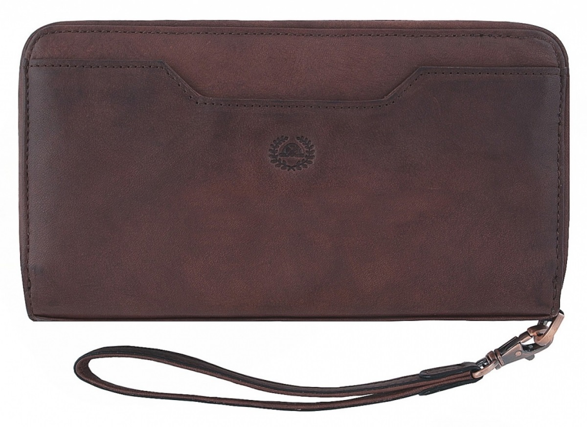 Выполнена из натуральной кожи высокого качества. Снаружи автономная секция на молнии, внутри 4 дополнительныx секции для банкнот, карман на молнии для монет, множество карманов и отделений для визиток/кредиток. Снаружи с тыльной стороны удобный карман на молнии, ремешок для ношения на кисти руки. Представительна и функциональна.